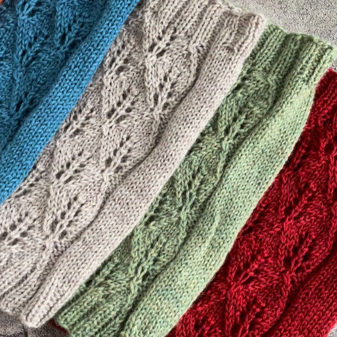 Lilac Leaf is a simple yet elegant cowl, featuring basic stockinette stitch and leaf lace pattern. It is knitted in the round from bottom up, and requires just one 50g ball of yarn.