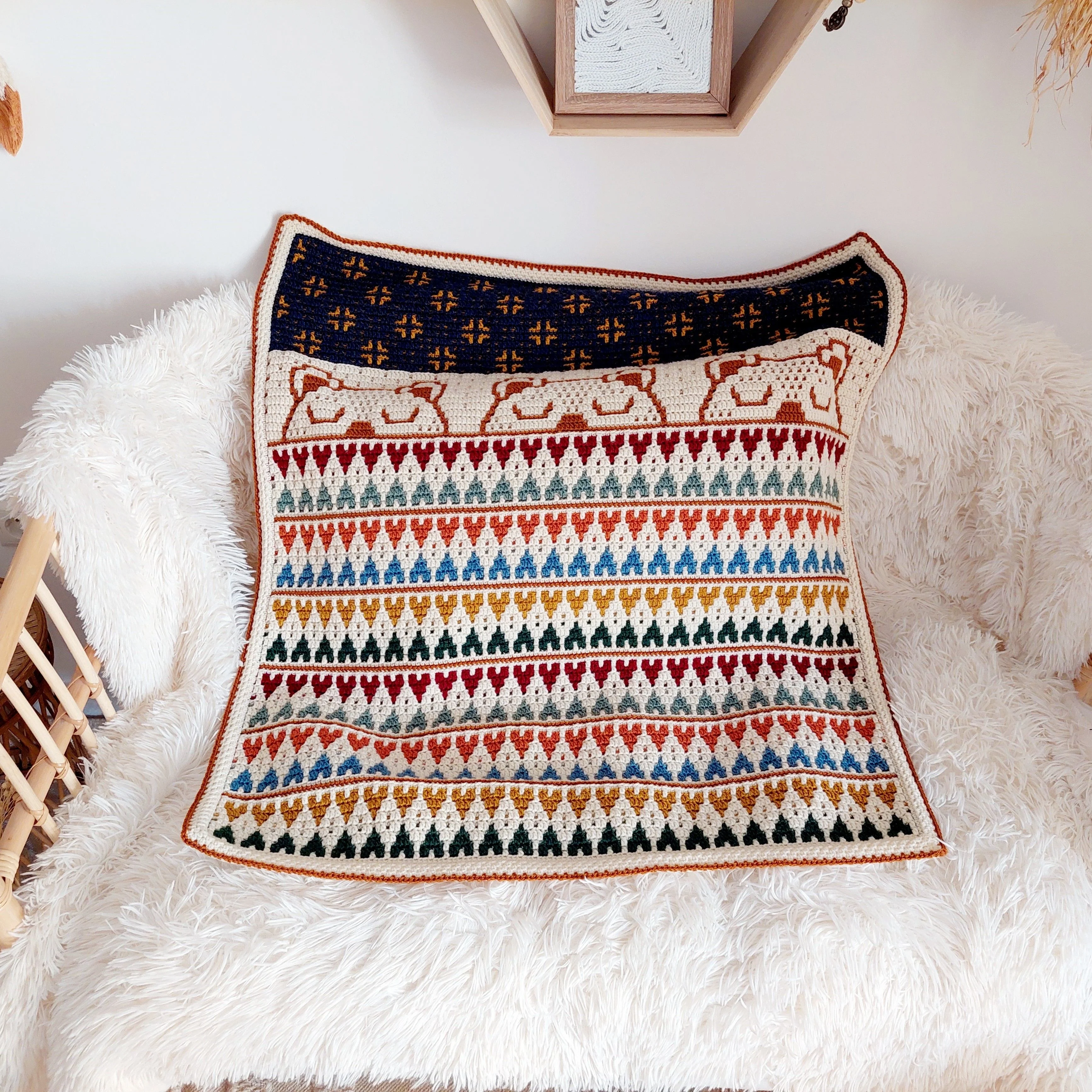The Sleep Tight, Little Bear pattern was created using overlay mosaic crochet in rows. The pattern sample was created using Woodland theme.